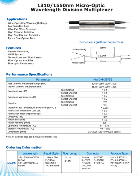 • 1310 1550nm micro-optic WDM